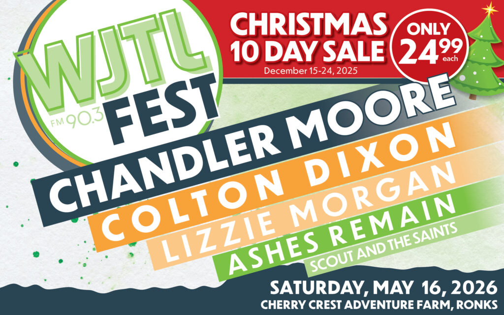 We’re thrilled to announce that WJTL Fest is returning to Cherry Crest Adventure Farm on May 16, 2026! Get ready for a full day of music and fun at this unique, family-owned destination in our community. We’d love for you to join the WJTL family for this unforgettable festival event!
